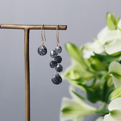 初めて見ましたブラックアベンチュリン♪アシンメトリーなデザインも素敵。金具は樹脂ノンホールに変更してもらいました。痛くないし簡単に外れる事はないのでとても着けやすいです。