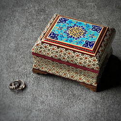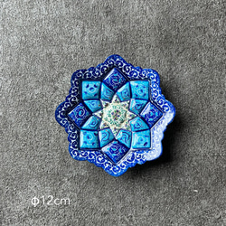 前回友人への贈り物用に購入し、自分も欲しくて購入しました!中東の模様や色遣いが好きなので、素敵なお品と出会えて嬉しいです。手作りならではの、筆遣いなども味わえるお品です。立体的につけられている凹凸模様も、絵付と相まって、綺麗です。