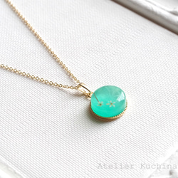 翠色のものを身に着けたくて探していました。レジンアートで素敵なタイトルがついた作品の中で迷いながら選んだペンダント。透明感と深い色合いが望み通りでした。迅速に丁寧に送っていただきありがとうございました。