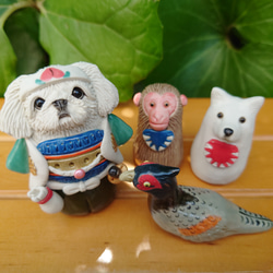 普段から犬モチーフの作品を製作しているので今回はお供のキャラクターの中にもワンコが居てキャラが被ってしまいましたが((笑))