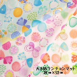 ランチョンマットは、学校給食で使える机のサイズに合わせたサイズで製作しています。