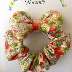 可愛いイチゴと花柄で、色どりが明るいので元気な印象になります。リボンもまるっと可愛らしく、着けたときのアクセントとして良いです!