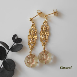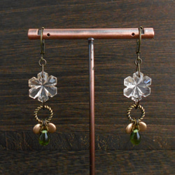 チェコガラスと真鍮パーツの大人ピアス。