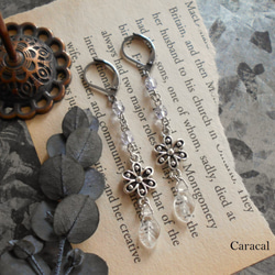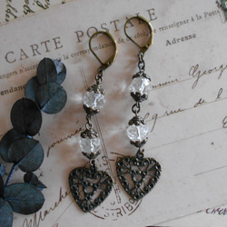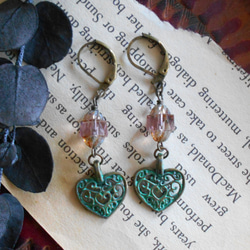 チェコガラスとフィリグリーチャームのアンティーク風ピアス。