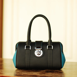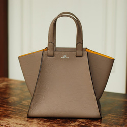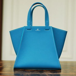 レザーハンドバッグ『スカーレット』Lサイズ ドイツシュリンク:ジンブルー色×グレー色