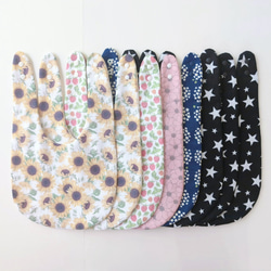 乳幼児の首回りの大きさにも個人差があるので、スタイの首回りの大きさは3段階調節ができるように制作しています。