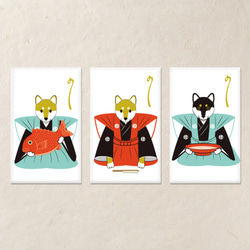 框住了貓的插圖,並通過模版印刷來表示祝賀。