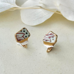 Kintsugi x 天然石材穿孔耳環 + 印度刺繡(橙色砂金石、Petersight、喜馬拉雅水晶)