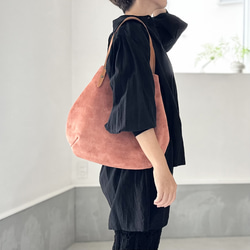 圓形手提包,採用牛皮絨面和加厚油鞣皮革製成(L 號)[Biaka]