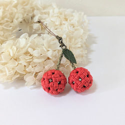 ❀アクセントに、同じくクラフトバンドで作ったさくらんぼのストラップをお付けいたします。(取り外し可能)
