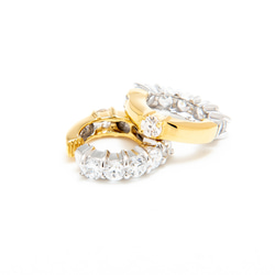 角のない、ながらかなフォルムに前後キュービックジルコニアを3石ずつ配置し、ロジウム、K18ゴールドコーティングで仕上げたイヤリングです。気分によって見せる色を変えられるのでファッションに合わせて楽しんで頂けます。