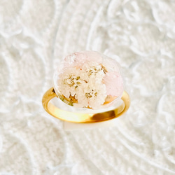 【アウトレット品/30%OFF】かすみ草とサンストーンのボタニカルピンキーリング