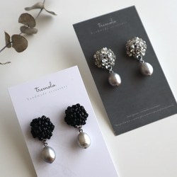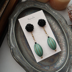 【チェコビーズとオーバルレースリングのピアス/イヤリング(blackdia/silver)】