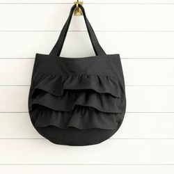 大人フリル2way❨黒❩通勤通学トートバッグ