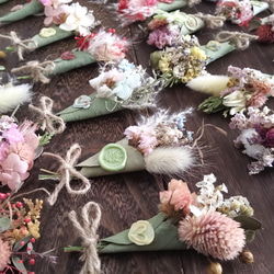プチギフトやテーブル装飾、ラッピング資材やガーランドの材料などなど、お使い道多彩なブーケです。