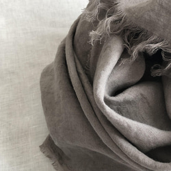 ・リネンのよいところはお手入れが簡単なこと!ストールは顔や首に直接触れるものなので、できればドライクリーニングではなく水を通したいですよね。ウールやカシミヤは縮みに気を使いますが、こちらは洗濯機で洗っていただけます。(色移り防止のため単体で、脱水は短め、乾燥機は避けてください。中性洗剤、オシャレ着洗い用洗剤をお勧めします。天日ではなく、陰干、部屋干しが生地を痛めません。)