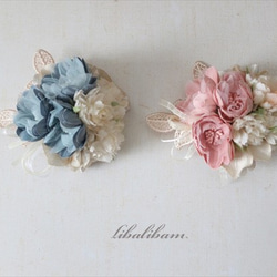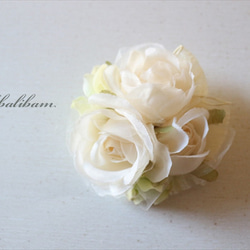 アーティフィシャルフラワーを使用し2wayコサージュを作成しました。