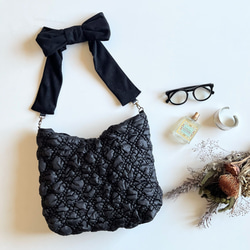 冬は洋服も重めな色になる中で、同色の鞄でもキルティングの軽さや柄!可愛いリボンショルダーで良いアクセントになりそうです!!