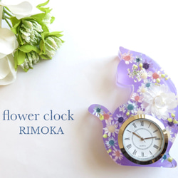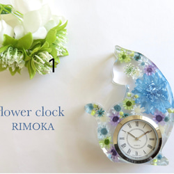 日にち指定可 ギフトに!【フラワー クロック ネコ 】ボタニカル カラー ギフト 置き時計 お祝い 送別