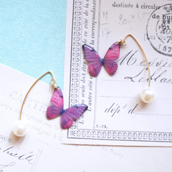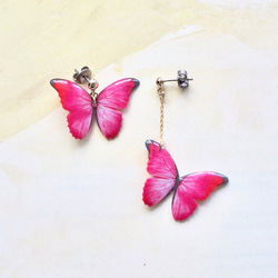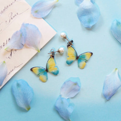 Sky Blue Butterfly Earrings, asymmetry[Pierced or Clip-on]
