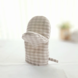 手のひら部分はポリエステル綿を厚めに入れてあり、裏布は生成りのコットンを使用しております。