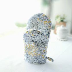 南仏プロバンス風の、ネイビーに小花プリントが上品で大人可愛いミトン鍋つかみでございます。