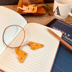 【個別】PEACE OF CHEESE チーズ柄 コードホルダー コードクリップ レザー 本革 イヤホン 充電器