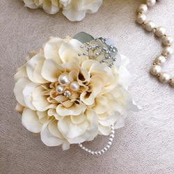 ☆パール&ラインストーン、桜とホワイトダリアのコサージュです。