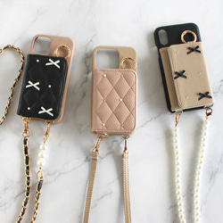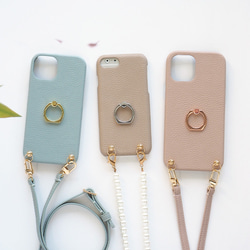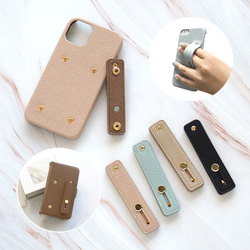 【レザーハードorキルティングケース×レザーベルト】くすみカラー 大人かわいい おしゃれ 自分だけの落下防止ベルト 97