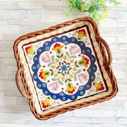 西班牙瓷磚方形籃子托盤“Doily Flowers Wine”