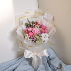 未完待續 | 永生玫瑰康乃馨 母親節 乾燥花 花束(紅粉色)-現貨