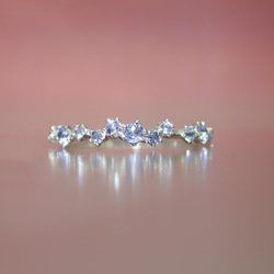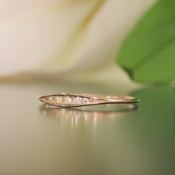 ダイアモンドの糸のようなリングを身につけることにより、指を長く美しくみせるようなデザインです。