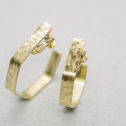 、醫用不鏽鋼或14K金)。 *您也可以選擇更換為螺絲耳環。 ■我個人收藏了一顆天然寶石,一直想把它用在藝術品中,所以我切割了黃銅片使其與寶石相配,然後錘擊表面使其完美融合。這款耳環以其優雅深邃的藍色