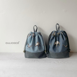 ランドセルの上から背負えるナップサック型の体操服入れです。手が空くので安全に登校できます(^^)