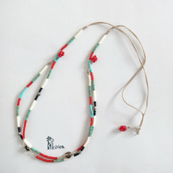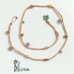 細いワックスコードにカラフルなビーズを散りばめて、グラスコードになるネックレスができました。