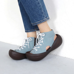 またサンダルには珍しいくすみブルーがおしゃれで、