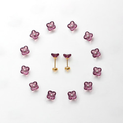 ヴィンテージガラスの揺れる透明な花ピアス/ノンホールピアス[クリア]サージカルステンレス/チタン