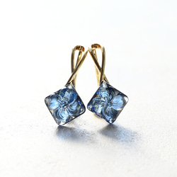 1930年代チェコスロバキア製の年代物ヴィンテージガラスを使用した揺れ感たっぷりのピアスです。