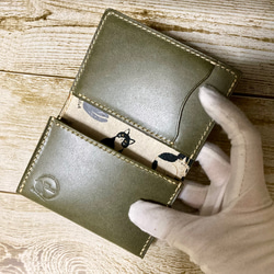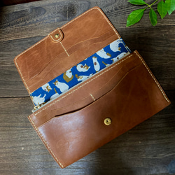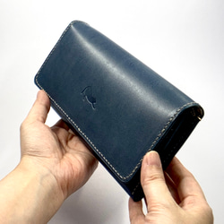 この青い革、血筋(血管のあと)が多く入っていますが、個性のある柄と思って頂けたら幸いです。