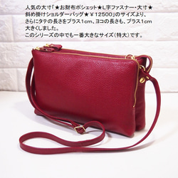 ●與人氣大號「★皮夾Pochette★大號L型拉鍊★斜背包★12,500日元」相比,縱向長度加長1cm,橫向長度也加長1cm。