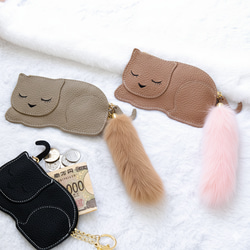 高級感がある合皮素材のケースに、両面艶があるコインチャームと一緒に大粒パールをあつらえ、ゆらゆらと揺れて、エレガントで、大人可愛く仕上りました。全体的に丸いフォルムで、スマホを操る仕草も上品になります。