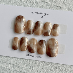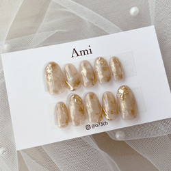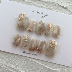 ネイルチップ*淡色ニュアンス 淡水 ストーン フリルパール うねうね ぷっくり ゴールド ブラウンベージュ ホワイト