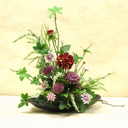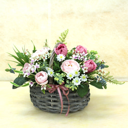 お得価格:「秋の彩り豊かな籠」アレンジ・アートフラワー(上質造花)