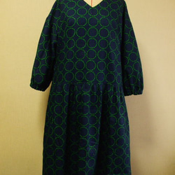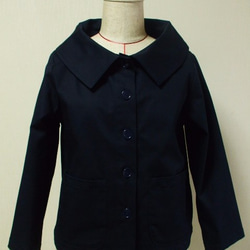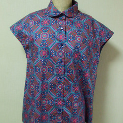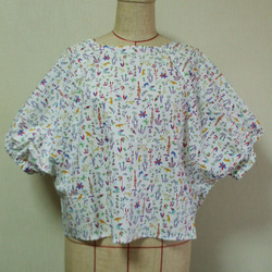 白地×紺×黒のピンストライプ柄の、スタンドカラーフレンチスリーブプルオーバーです♪たっぷりしたデザインです♪