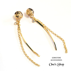 黄金の人生を与える天然石【ルチルクォーツ】のオルゴナイト 水滴と雫水晶の2wayピアス イヤリング 14kgfピアス