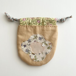 裏側にはアップリケと同じ小花柄の布をつなぎ合わせています。