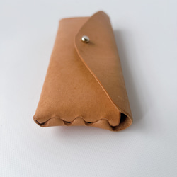 一枚の革に入った切り込みによって、物をいれると立体的なネット上に。
