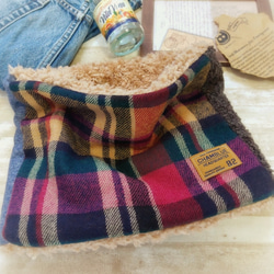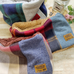 ■□■【再販】あたたかいチェックのフリースに、スウェット地を合わせて作った、カジュアルなパッチワークネックウォーマーです!!■□■