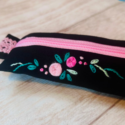 【定形外送料無料】ミニペンポーチ*ブラック×ピンク*スリムペンケース*推し色*クリスマス