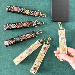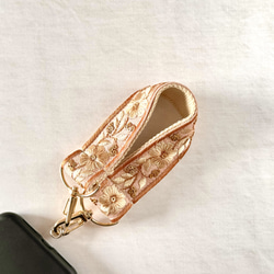 印度刺繡絲帶智慧型手機肩帶,玫瑰圖案,粉紅色或炭灰色